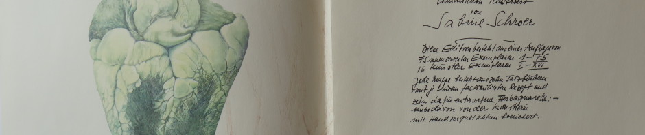 | Masse | L: 4,5 cm x B: 32,5 cm x H: 47,5 cm | Technik / Material | 10 Falzblätter, je von der Künstlerin u. Spörri signiert, in Leinenmappe | |